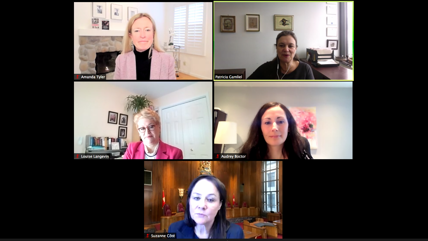 et présidente du comité égalité de l’ABC-Québec, trois juristes s’étaient réunis afin de rendre hommage à Ruth Bader Ginsburg ; l’honorable Suzanne Côté, juge à la Cour suprême du Canada, la professeure Louise Langevin de la Faculté de droit de l’Université Laval et la professeure Amanda Tyler de l’université Berkeley, coauteure du livre « Justice, Justice Thou Shalt Pursue: A Life’s Work Fighting for More… » avec Ruth Bader Ginsburg.